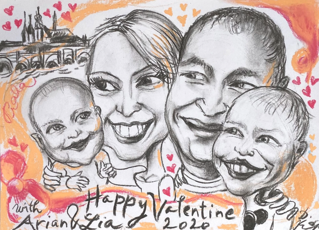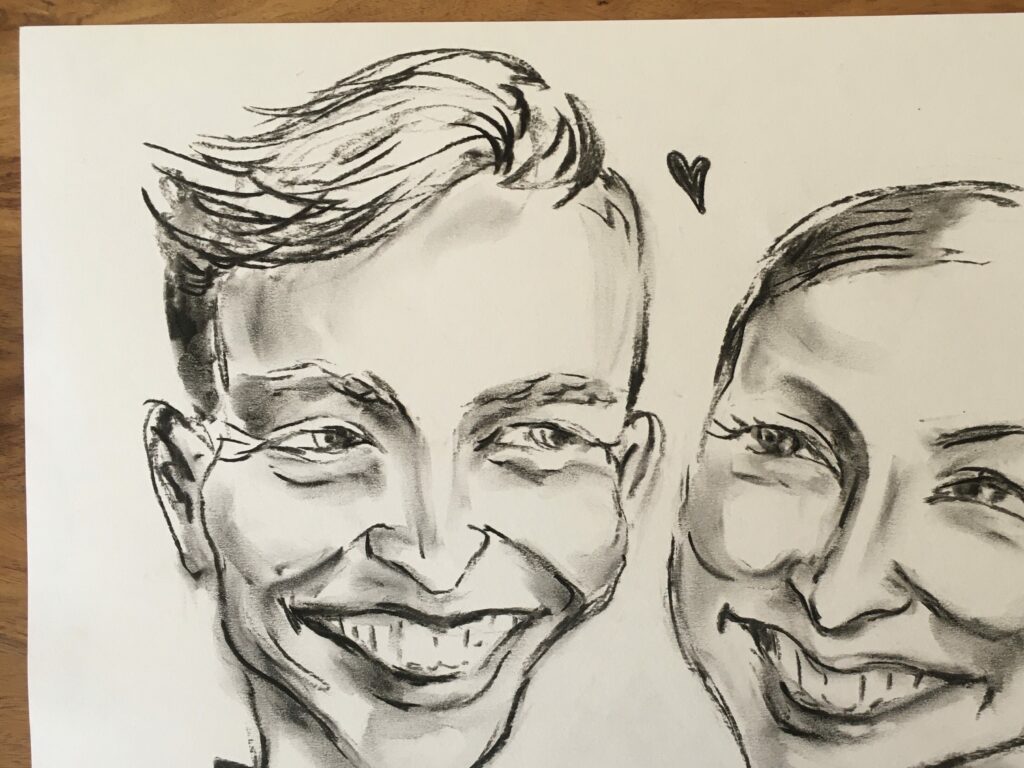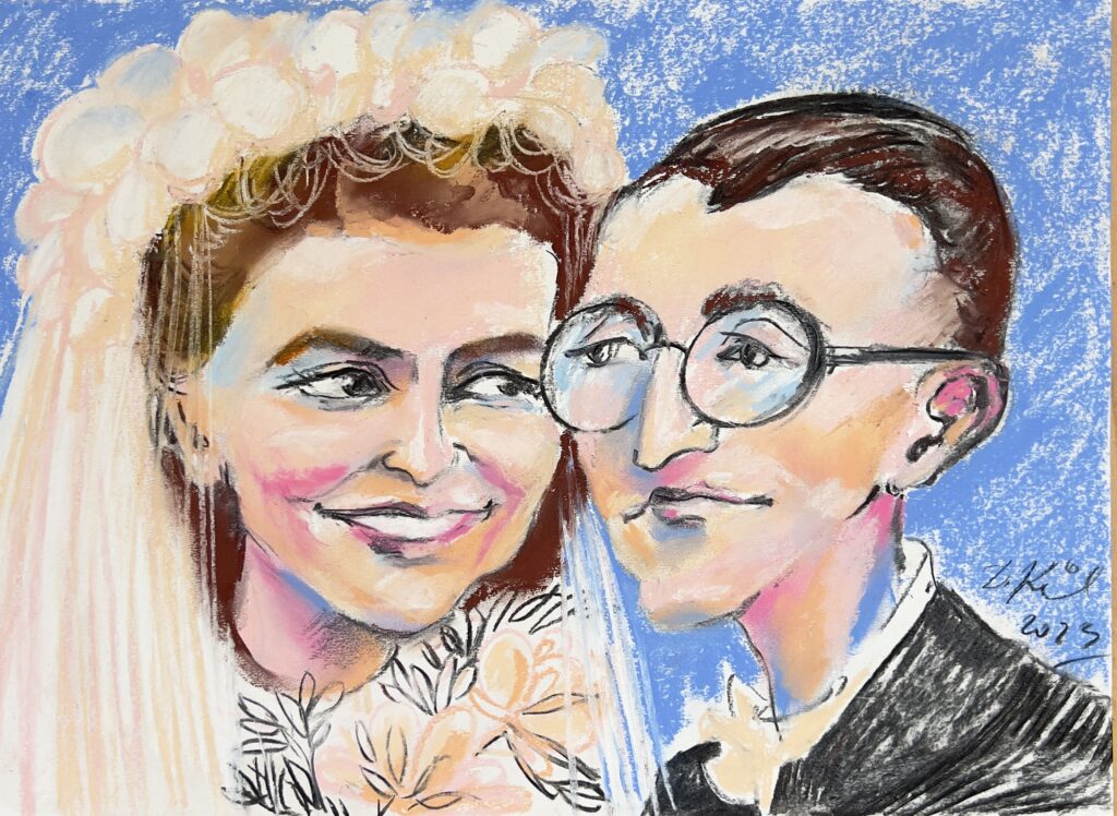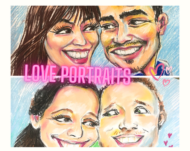 Du kan bestille et sort-hvidt eller farvet portræt – jeg tegner ud fra et foto.