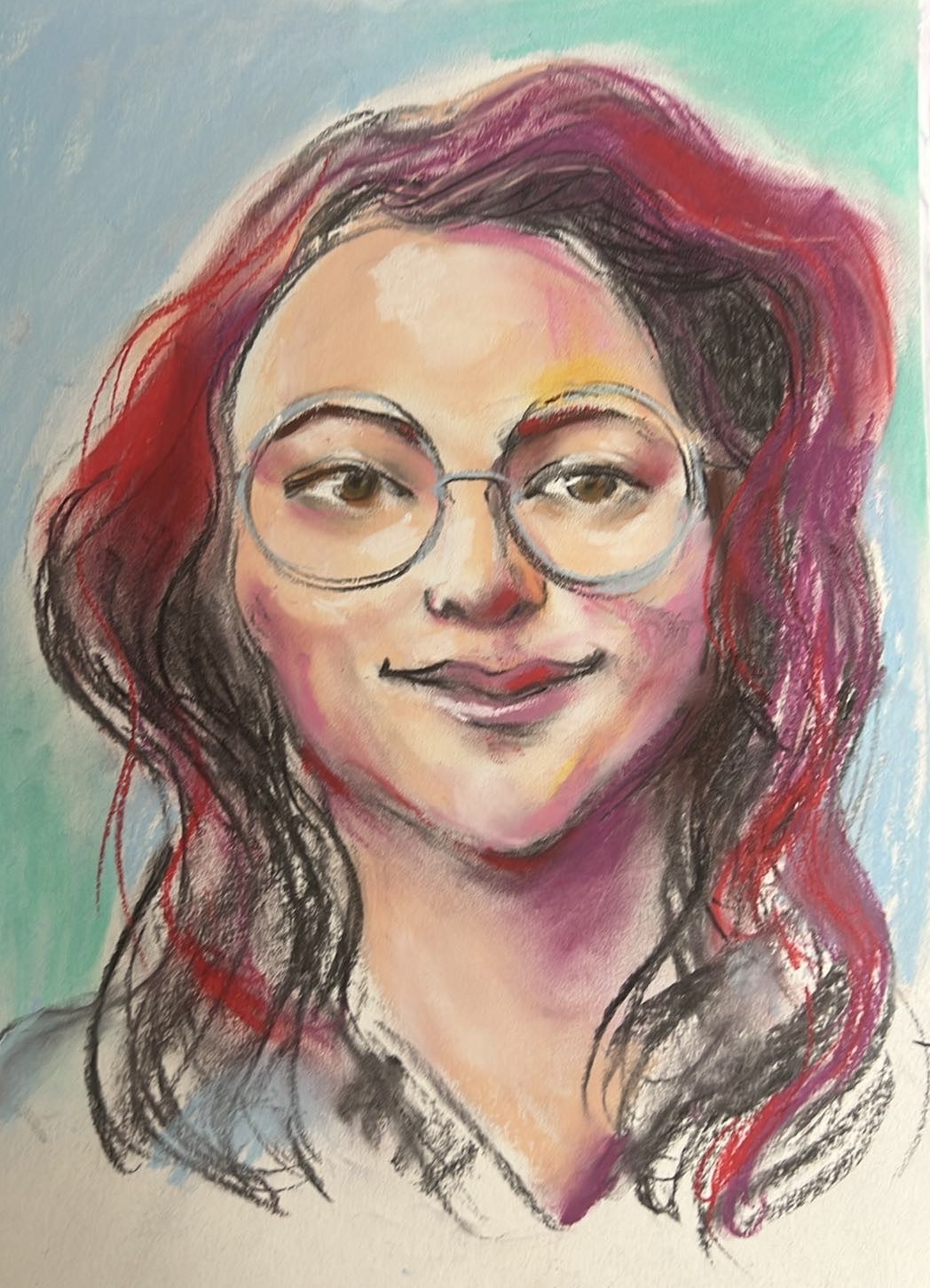 Du kan bestille et sort-hvidt eller farvet portræt – jeg tegner ud fra et foto.